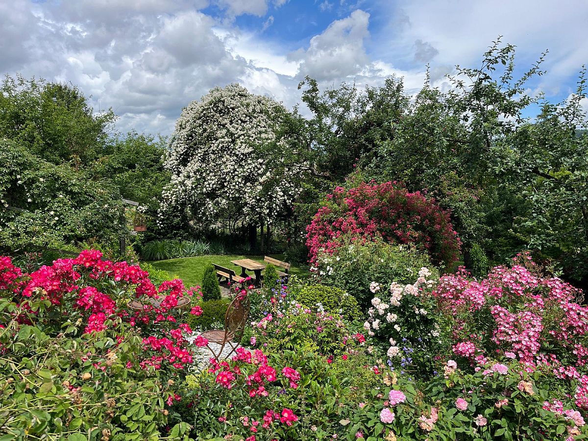 Rosenblüte im Juni, Gemüseraritäten, Staudenbeete mit